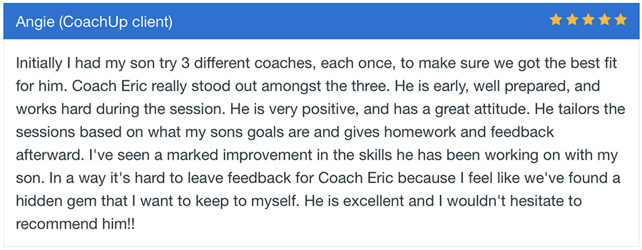 He has the experience, knowledge & skills to get players to the next level FAST! Check out the reviews and book a session today!